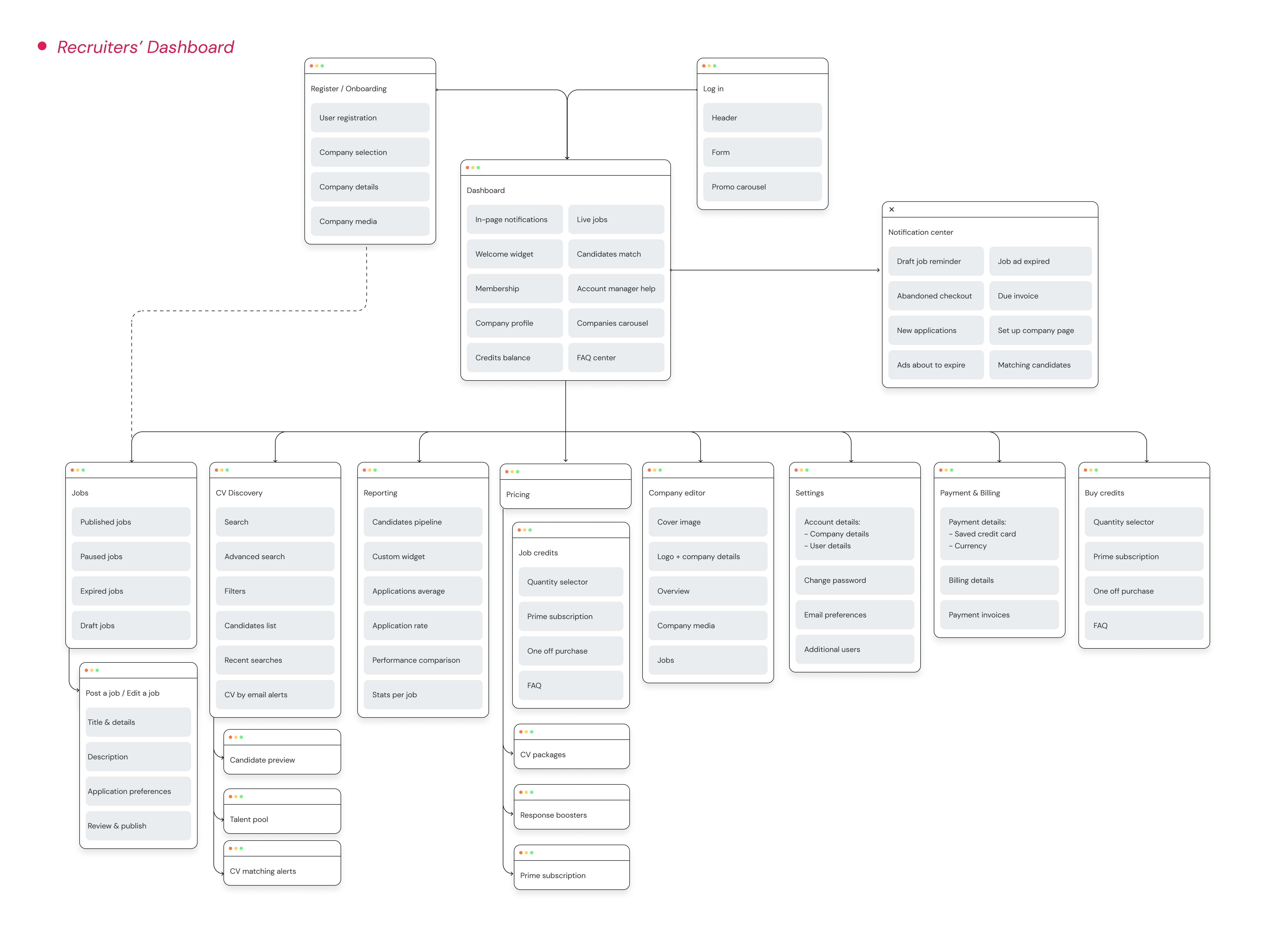 Market research and competitor analysis indicated two primary methods for connection - job postings for active job seekers and a candidate database for recruiters to target passive candidates.