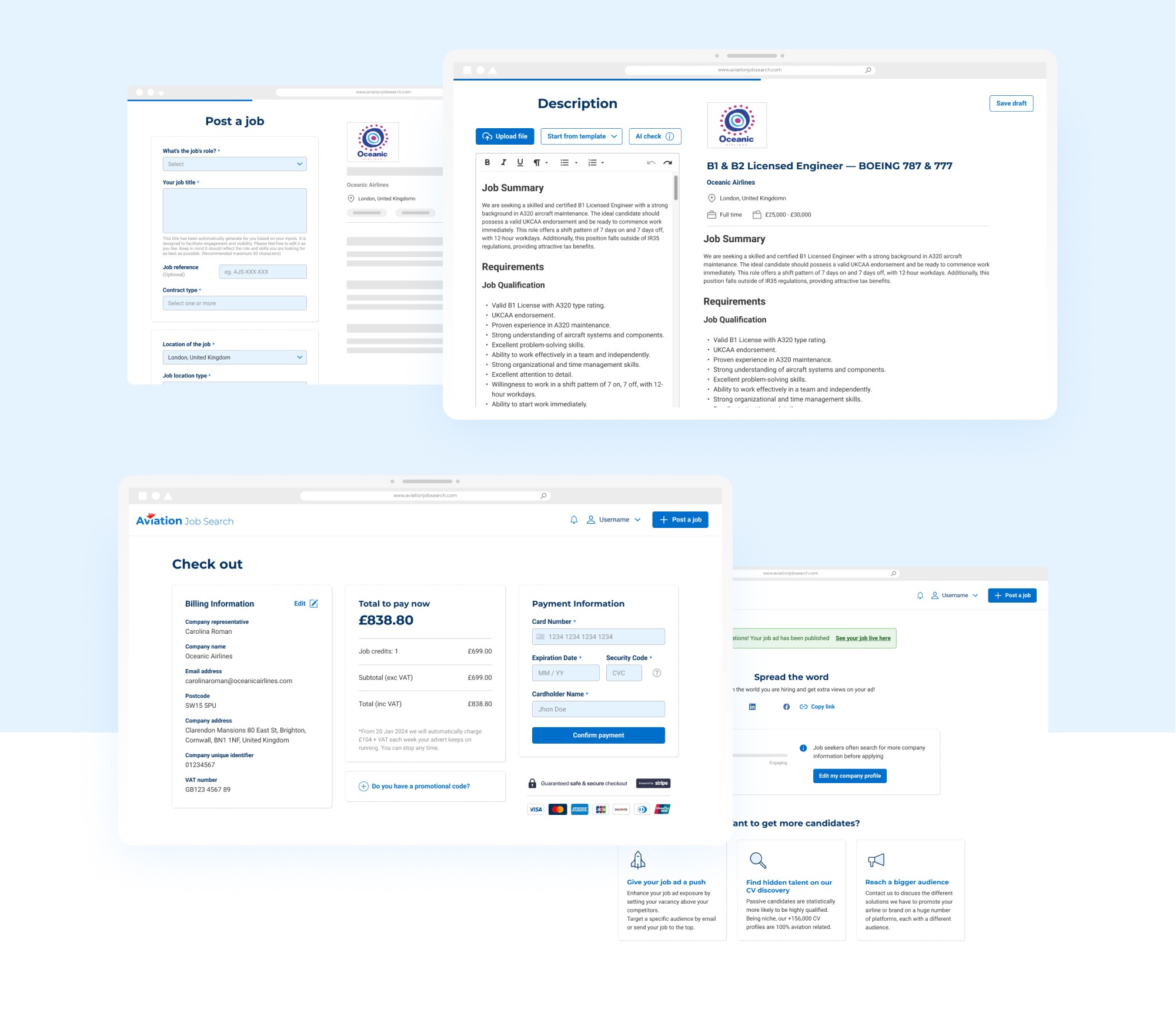 Results: The redesign led to an increase in subscription rates and average order value (AOV). Time taken by recruiters to post job adverts was significantly reduced, enhancing their user experience. Additionally, there was a notable increase in job applications and candidate profile completion rates, contributing to revenue growth through one-time payments from direct employers.