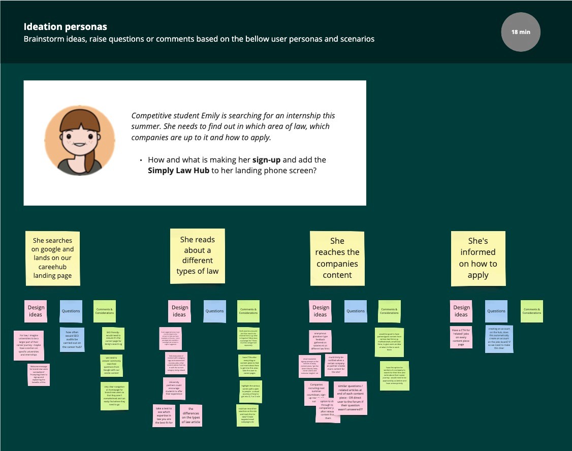 We performed a series of interviews with students to gain insights into their career paths challenges and interests. These helped us creating a top level persona, guiding the UI/UX design process.