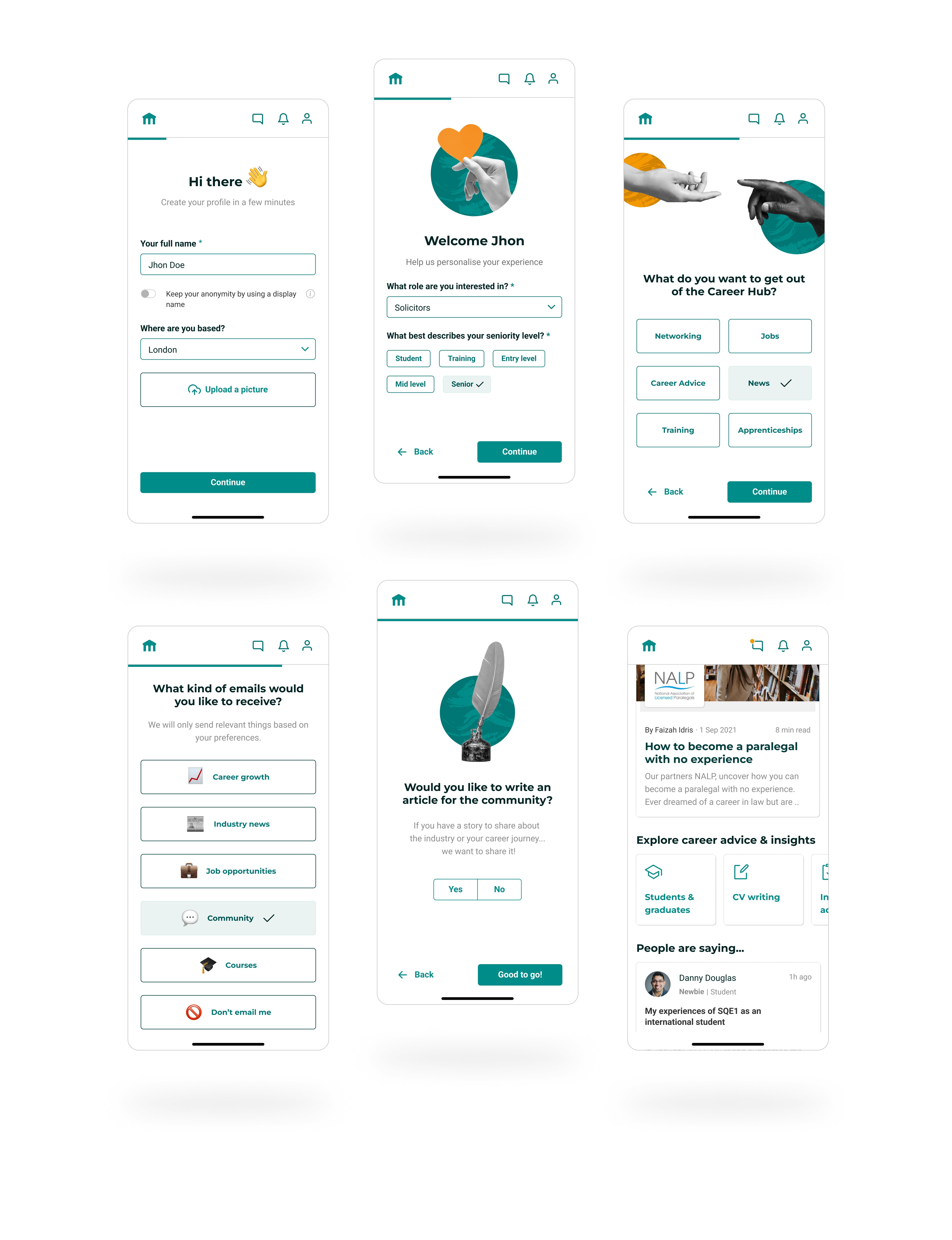 At this stage there were collected user interests and career goals to tailor their content feed, enhancing user engagement and relevance.