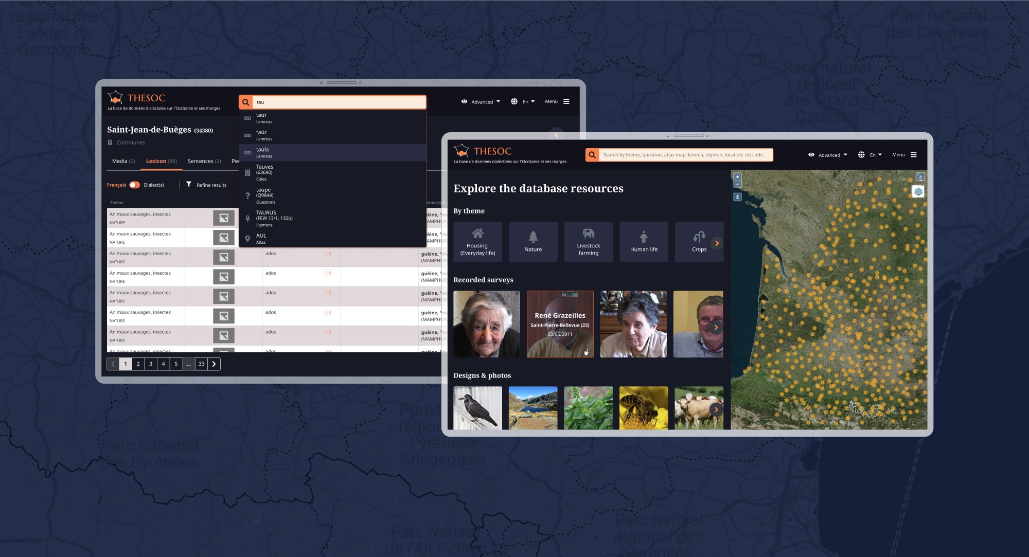 THESOC (from the Occitan Thesaurus) is an ongoing project from Côte d'Azur University which provides the tools to investigate and support different Occitan language studies. A thesaurus is a book that lists words or phrases that mean the same thing or almost the same thing, something similar to a repository of synonyms.