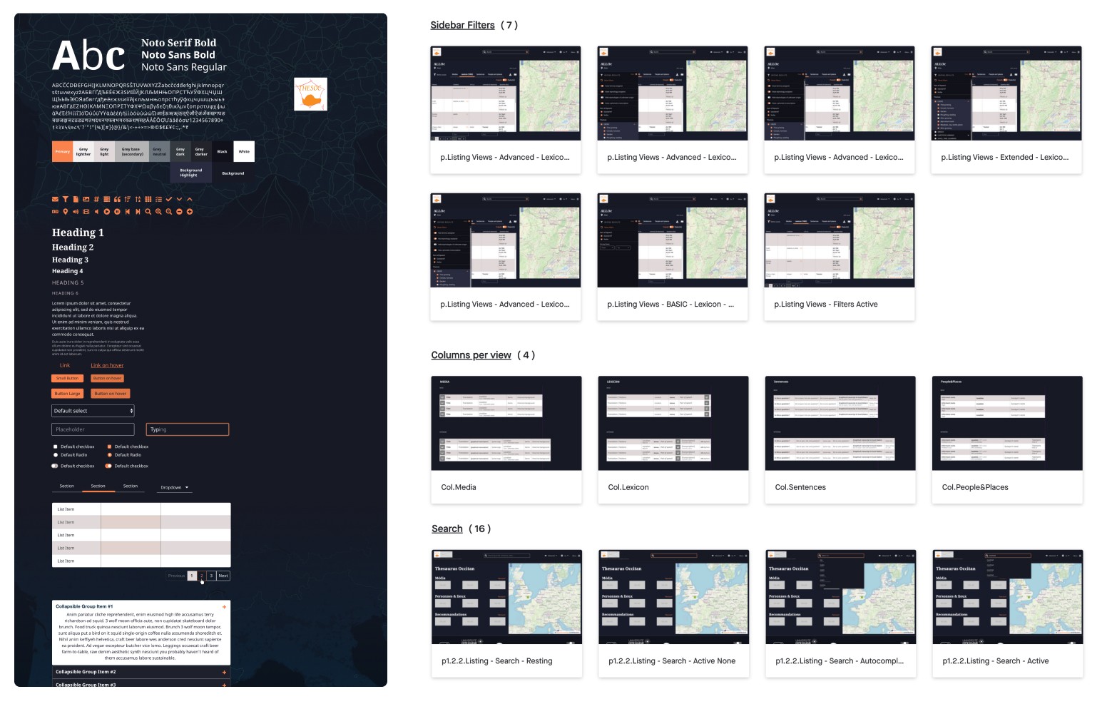 What sets this dictionary apart is the usage of tables and maps. The difficulty relied on other features to control the data displayed and the information architecture. One of the resources we helped ourselves with was icons, that acted as visual anchors for the type of user input. Fontawesome was chosen due to its big repository and accessibility.